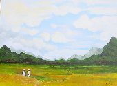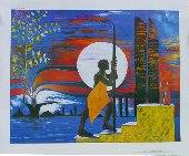 CAREER: Maharaj's paintings reflect his personal experiences and almost always include people. His work is influenced by his Hindu roots with emphasis on mythology, family values, education, and sprituality. He has spent his career teaching art in the secondary schools of Trinidad & Tobago. From 1993 to 1996, he was a member of a travelling exhibition "Carib Art" which included contemporary works of art from the Dutch, English, French, and Spanish Caribbean. His work has been exhibited in Canada, Germany, USA, and the Caribbean, including:
