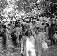 Located on the north coast of Trinidad, Blanchisseuse was visited in 1870 by the famous English poet Charles Kingsley who left impressed with the area's greenery. Bathers can enjoy the water of the Caribbean Sea on the beach of Paria Bay. The beautiful Marianne River, which runs through this town, is a mecca for Spritual Baptists to practice their religion, and for Hindus to celebrate the Ganga Dashera (also Dashara) Festival (see picture at right) which commemorates the day on which it is believed that the River Ganges descended from heaven and first touched the earth, after being released by Lord Shiva. |