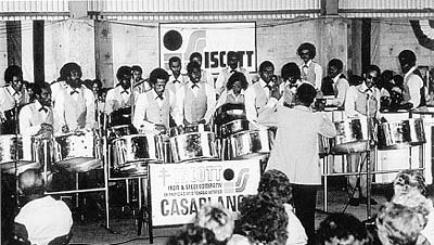 Casablanca was formed in Belmont, Port-of-Spain, in 1945 under the leadership of Oscar Pyle. The band was the first steelband to give a classical recital when it performed at Whitehall, St. Clair, in 1948. It was also believed to be the first steelband to be recorded when its album "Trinidad Steelband" was released in 1948. Casablanca had the sponsorship of the Iron & Steel Company of Trinidad and Tobago (ISCOTT) in the 1970s, but lost it in the late-1980s when the company's management changed. In 1982, Casablanca received the Trinidad & Tobago Humming Bird Medal Gold for music. Casablanca finished among the top three steelbands in the following significant competition: |