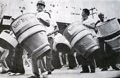| The Tripolians was founded in 1971 in St. James, Port of Spain, with John Babb as its first manager and Emmanuel Camps as its first captain. The band was an instant success on the road with Mary Ann (Roaring Lion) and Drunk and Disorderly (Mighty Sparrow). In 1972, it obtained the sponsorship of Vat 19 rum distillers. Tripolians' success was very instrumental in keeping alive the single-pan concept that existed up until the mid-1950s. In 1975, the band won the first Panorama competition that was created for single-pan bands, better known as "pan-round-the-neck." In 2011, there were over 60 single-pan bands in existence throughout Trinidad & Tobago. In 2011, its manager was Keith Simpson. Tripolians finished among the top three steelbands in the following significant competition: |