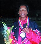 - 2000 Olympics, Sydney, Australia - Heptathlon (22nd, 5,627 Points: 100 meters Hurdles - 13.72; High Jump - 1.66 meters; Shot Put - 11.44 meters; 200 meters - 25.35; Long Jump - 5.90 meters; Javelin - 48.99 meters; 800 meters - 2:32.36)